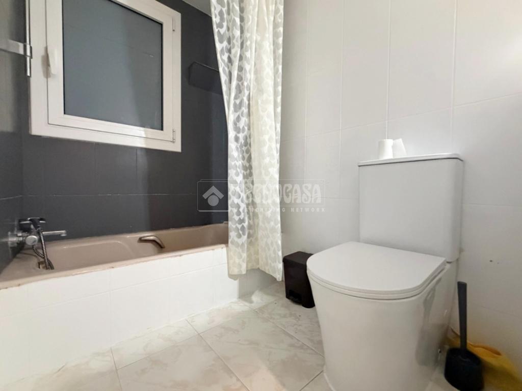 El baño, que cuenta con ventana y bañera, ofrece comodidad y luminosidad. La cocina está equipada y lista para inspirar tus dotes culinarias. El salón comedor es el corazón de la casa, con acceso a un gran balcón donde podrás disfrutar de momentos al aire libre y vistas a la zona.